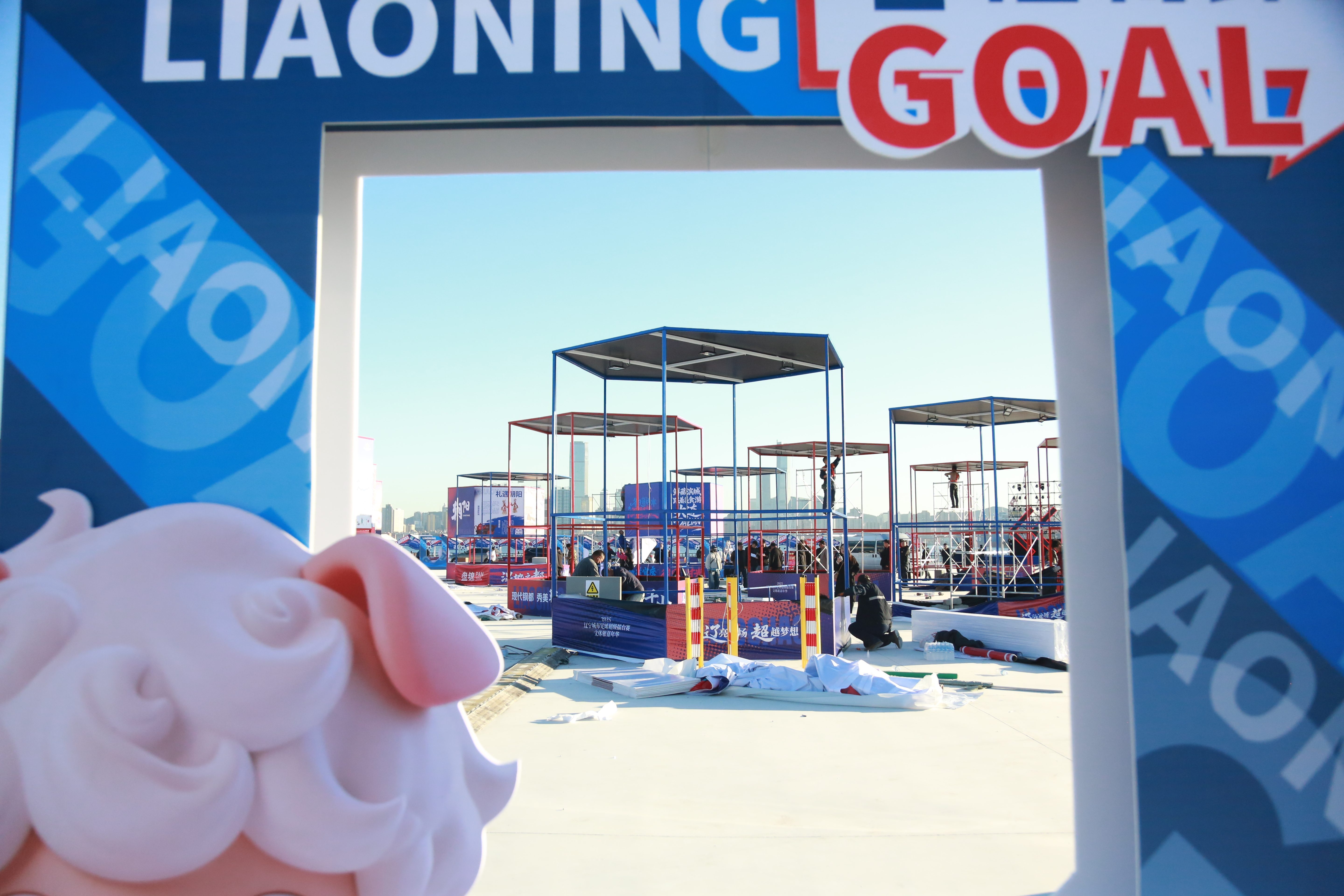 11月13日下午,大连梭鱼湾足球场西侧外场,“辽超嘉年华”的拱门已然矗立。记者步入场内看到,一个由辽宁省十四个城市元素拼接而成的巨型“足球”映入眼帘,初具雏形。