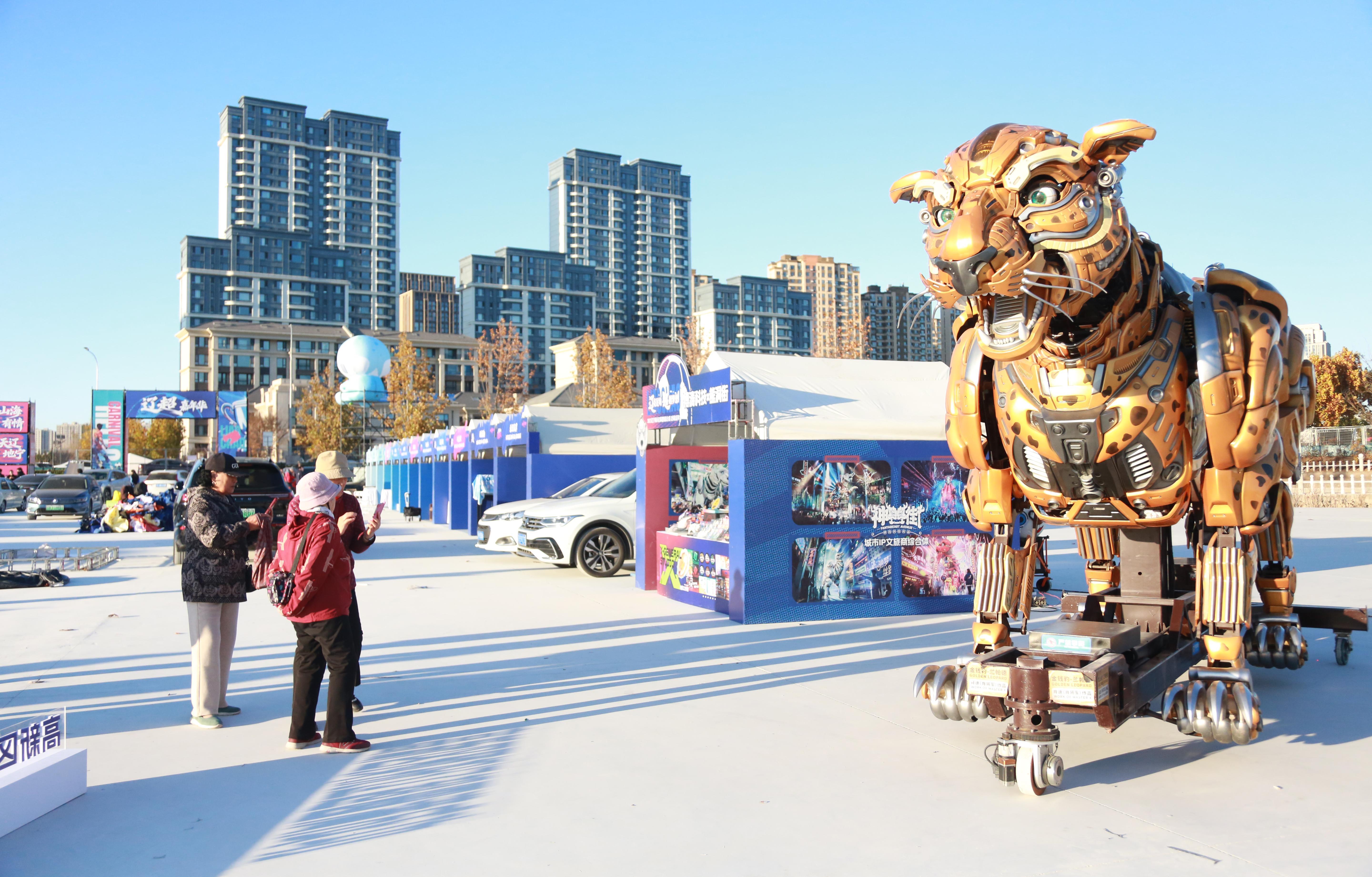记者再向里走,来到了互动打卡区,两座“庞然大物”赫然入目,其独特的造型与气势,让每一位路过的人都忍不住多看几眼。“吼……”一阵低沉吼叫声瞬间吸引了现场所有孩子的目光,原来是来自博涛科技的金钱豹机甲“兰帕德”发出的声音,它在午后阳光下缓缓睁眼、转头。大连博涛文化政策外联副总经理张海龙表示,这只“金钱豹”将在14日至16日每天进行两场巡游,每场10分钟。“骑博涛机甲,看辽超决赛!”他祝愿每一位球员都如金钱豹,在绿茵场上疾驰如风,所向披靡。