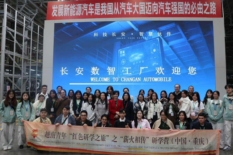 中国青年报客户端讯(中青报·中青网记者 国新冠 李媛媛 李悦 张昊天)11月15日,越南青年来华“红色研学之旅”之“薪火相传”研学营来到重庆,参访果园港国家物流枢纽、西部陆海新通道运营调度中心、长安研发中心、长安数智工厂等地,感受中国式现代化发展成就。研学营主题为“探寻革命足迹,勇担时代使命”,共有来自越南5所高校的200名大学生参加。