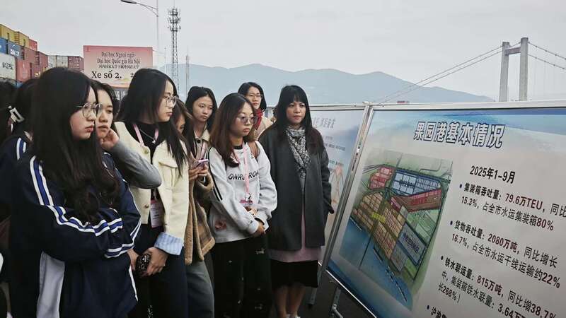 11月15日,重庆,越南青年了解果园港国家物流枢纽的基本情况。中青报·中青网记者 国新冠/摄